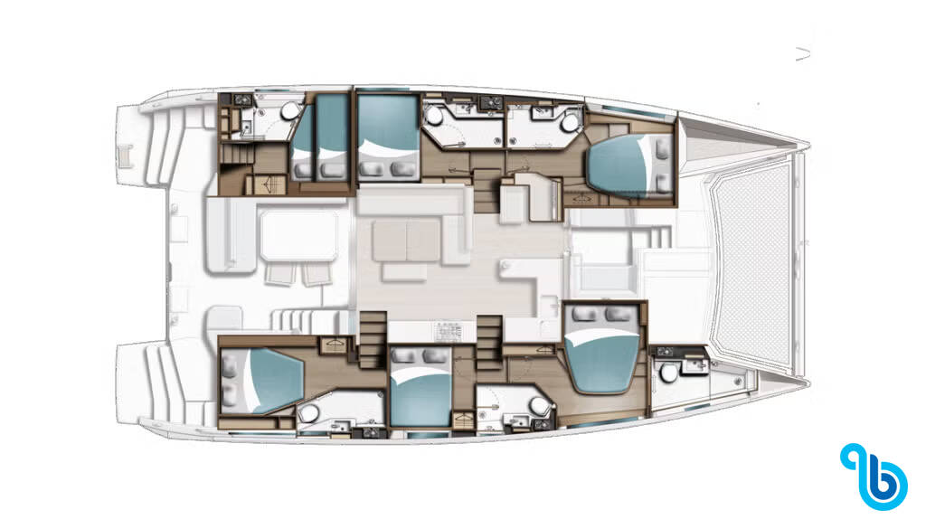 Leopard 52 New (Katamarán), bola spustená na vodu v roku 2026 a kotví v Taliansko - Sicília, Eolie v meste Sicily, Portorosa. Trup je vybavený 6 + 1 kajutami a 7 wc a je schválený na pohodlné ubytovanie 12 + 1 osôb.