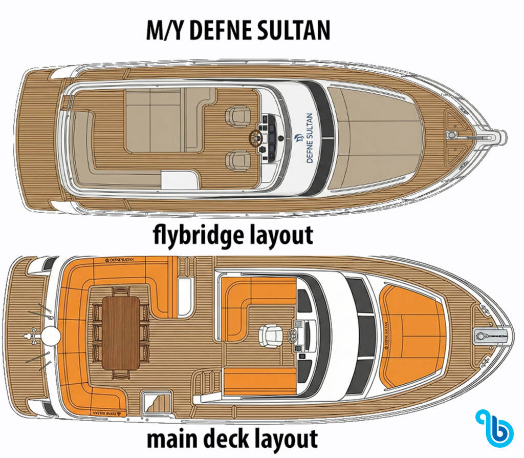 Motoryacht Defne Sultan (Motorová jachta), bola spustená na vodu v roku 2018 a kotví v Turecko - Istanbul v meste Istanbul Marina. Trup je vybavený 0 kajutami a 1 wc a je schválený na pohodlné ubytovanie 2 osôb.