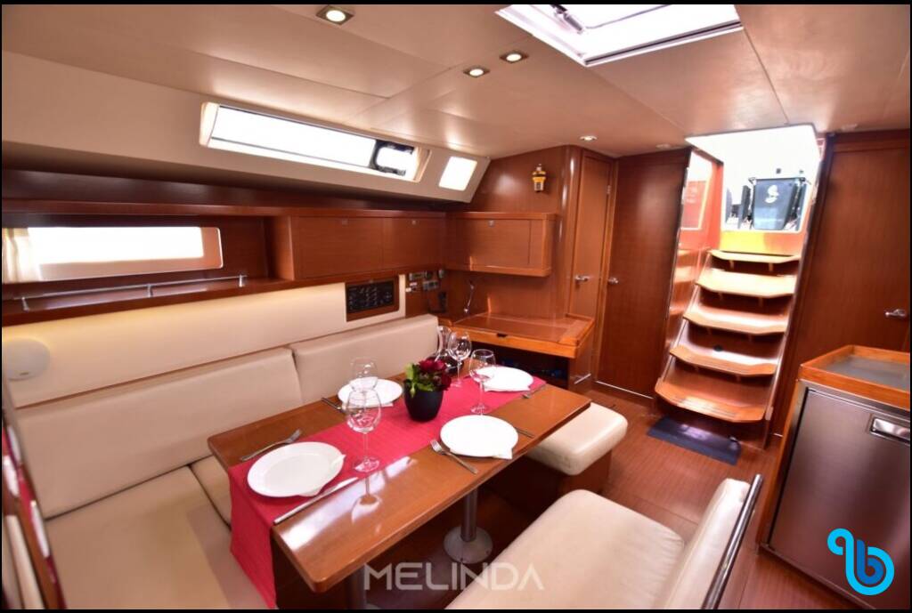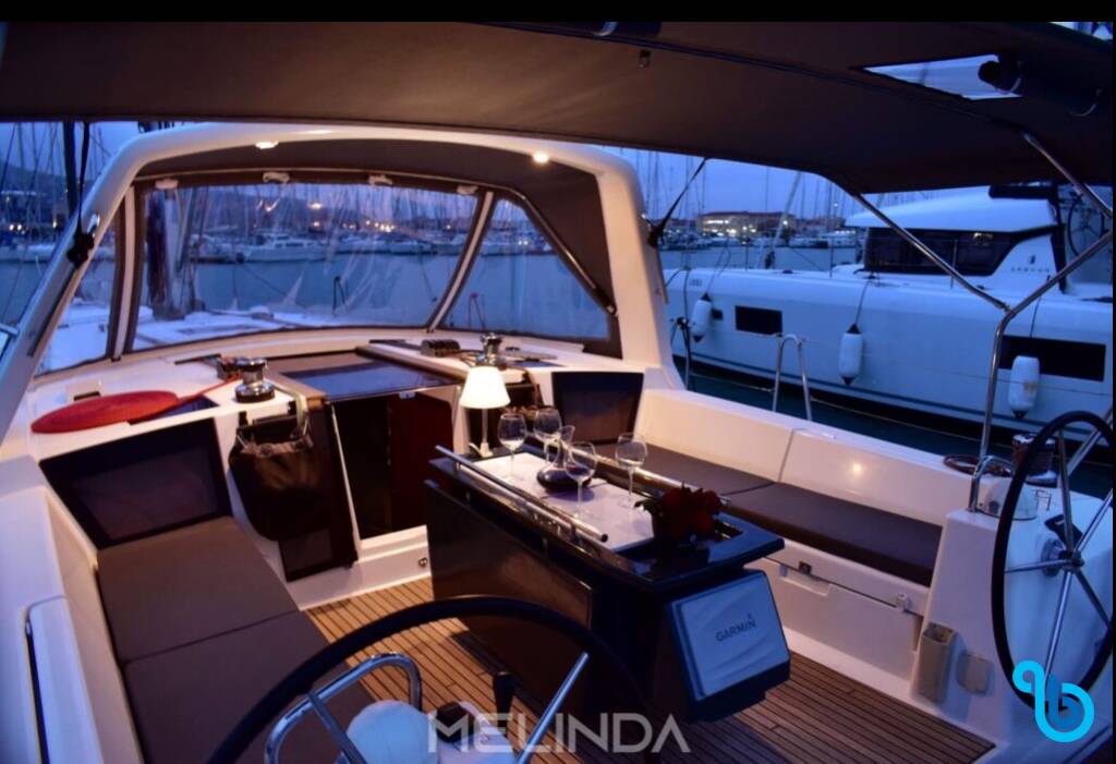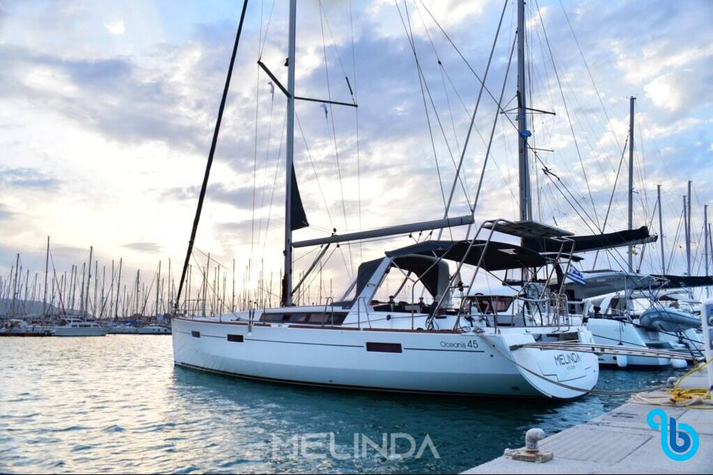 Oceanis 45 Melinda (Plachetnica), bola spustená na vodu v roku 2012 a kotví v Iónské ostrovy (Grécko) v meste Lefkas main port. Trup je vybavený 4 kajutami a 2 wc a je schválený na pohodlné ubytovanie 10 osôb.