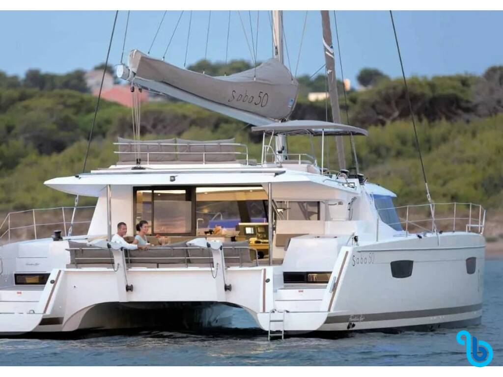 Saba 50 Bicos (Katamarán), bol spustený v r2015 a sídli v Turecko Fethiye / Gocek mesta Yacht Club Mai-Fethiye. Trup je vybavený o 6 kabíny a 6 toaleta a je schválený na pohodlné ubytovanie 13 ľudí.