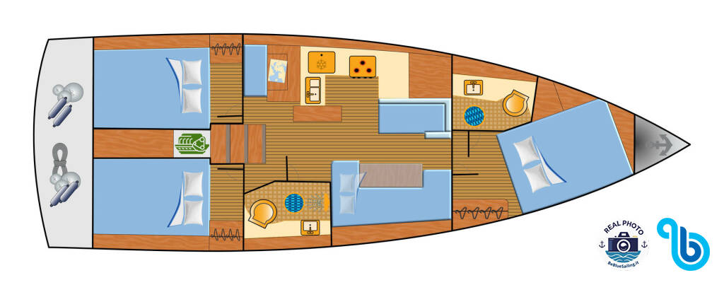 Kapitán nie je zahrnutý v cene lode. Kapitána je možné pridať počas potvrdzovacieho postupu: cena sa zvyčajne pohybuje od 180 do 250 EUR na deň; kapitán potrebuje vyhradenú kajutu. Po overení u prevádzkovateľa BeBlue bude možné požiadať, aby kapitán spal v jedálenskom kúte (centrálny salónik).