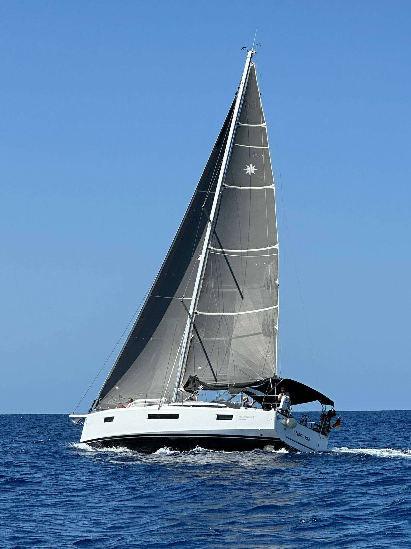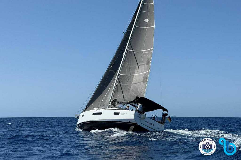 Sun Odyssey 410 Naoussa (Plachetnica), bola spustená na vodu v roku 2022 a kotví v Španielsko - Baleárske ostrovy v meste Palma de Mallorca, Marina Naviera Balear. Trup je vybavený 3 kajutami a 2 wc a je schválený na pohodlné ubytovanie 6 + 2 osôb.