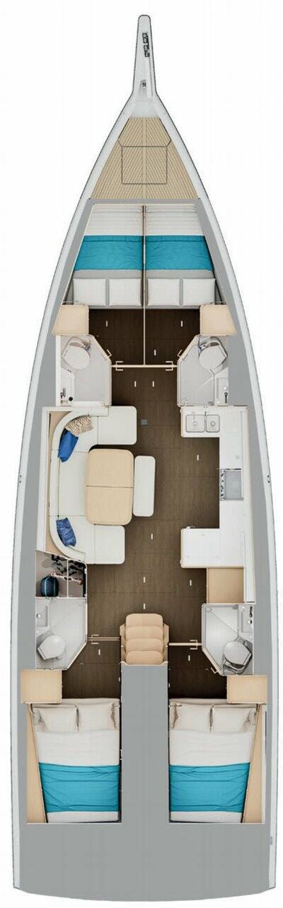 Kapitán nie je zahrnutý v cene lode. Kapitána je možné pridať počas potvrdzovacieho postupu: cena sa zvyčajne pohybuje od 180 do 250 EUR na deň; kapitán potrebuje vyhradenú kajutu. Po overení u prevádzkovateľa BeBlue bude možné požiadať, aby kapitán spal v jedálenskom kúte (centrálny salónik).