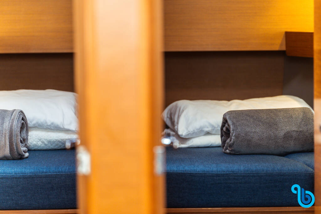 Kapitán nie je zahrnutý v cene lode. Kapitána je možné pridať počas potvrdzovacieho postupu: cena sa zvyčajne pohybuje od 180 do 250 EUR na deň; kapitán potrebuje vyhradenú kajutu. Po overení u prevádzkovateľa BeBlue bude možné požiadať, aby kapitán spal v jedálenskom kúte (centrálny salónik).