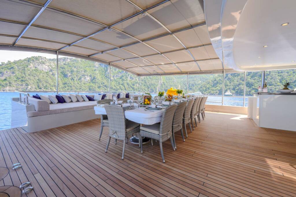 Included: hire of the yacht, crew, port fees in Turkish waters (private marinas not included), 4 hours/day fuel for main engines, fuel for generators.