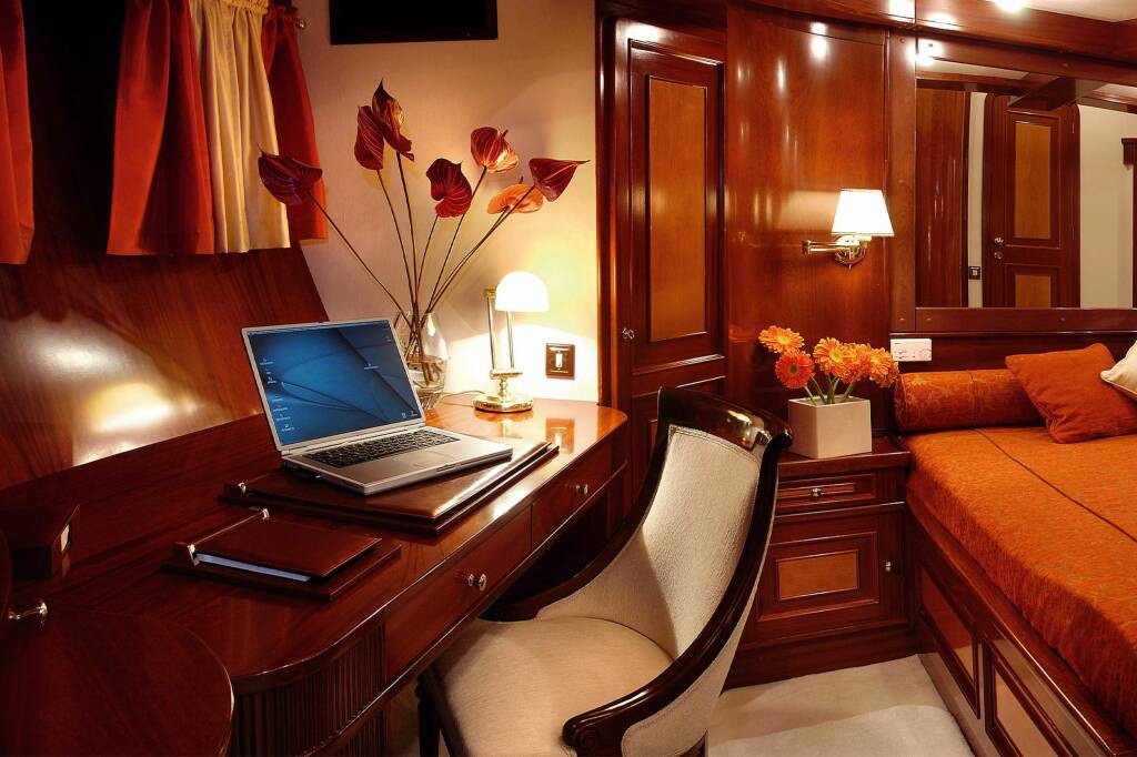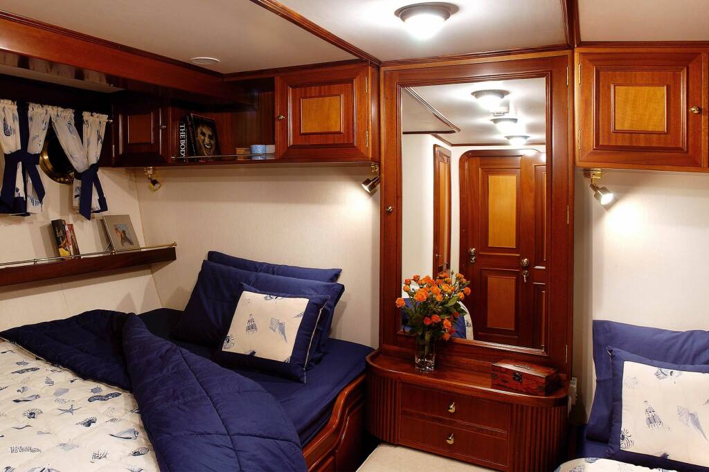 Accommodation: 5 double cabins. Two of them with 1 pullman bed each.