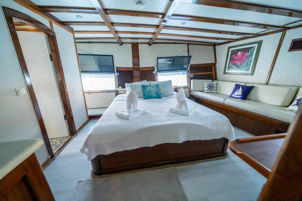 Väčšina jácht môže podľa vnútorného usporiadania ubytovať 6 až 12 hostí.