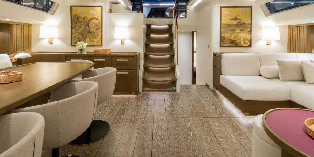 Marie-Charlotte splits her time between interior maintenance and assisting on deck. Indoors, she takes care of cleaning, tidying, and service to ensure the comfort of both guests and crew. On deck, she assists with maneuvers, helps with exterior maintenance, and ensures safe operations. She also contributes to provisioning and the daily organization of life on board. When guests are on board, Marie-Charlotte ensures they receive attentive service, whether in the cabins, salon, or on deck.