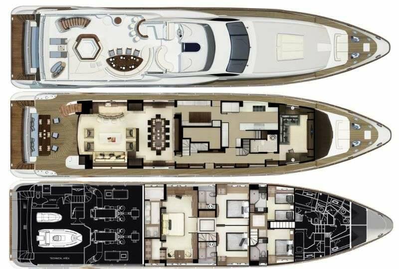 Niektoré superjachty nad 80 metrov, v súlade s medzinárodnými certifikáciami, môžu ubytovať až 36 osôb.