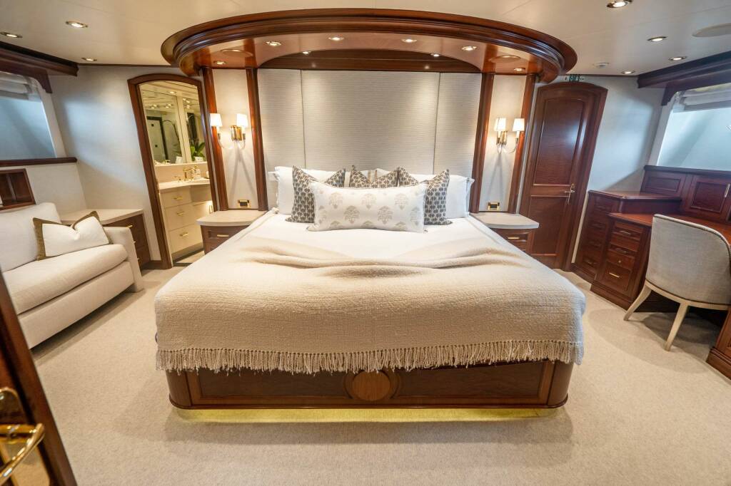 of the stairway, foyer area. The master stateroom is provided with a king size berth and spacious cabin space with a large
