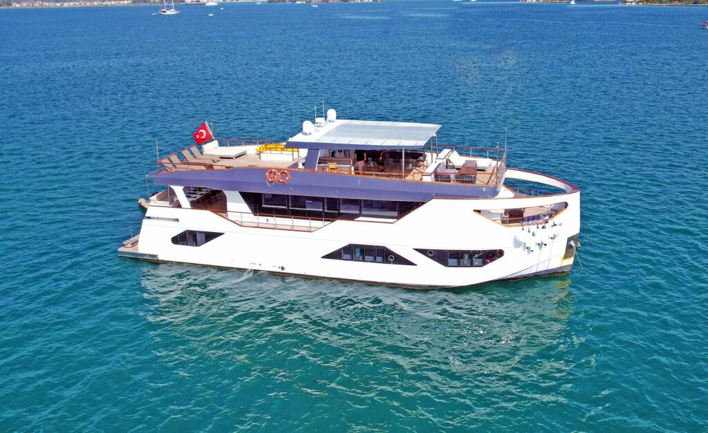 Luxusný katamarán NAYK 3, postavená v roku 2023, kotví v Turkey. Má 6 kajút, môže ubytovať 12 osôb.
