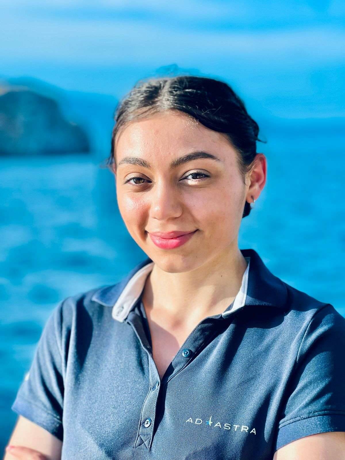 Meet Marina, the vibrant stewardess on board Ad Astra. A dynamic blend of Italian heritage and Greek roots, Marina brings with her a stellar maritime background, having served as a Petty Officer in the Hellenic Navy. With her seafaring precision, impeccable service skills she’s set to elevate the onboard experience. Currently pursuing Maritime Studies in Athens, Marina is fluent in Italian, Greek, and English, and thrives in fast-paced, multicultural environments. Energetic, adaptable, and always professional, she’s known for her calm presence, sharp eye for detail, and unwavering commitment to excellence!
