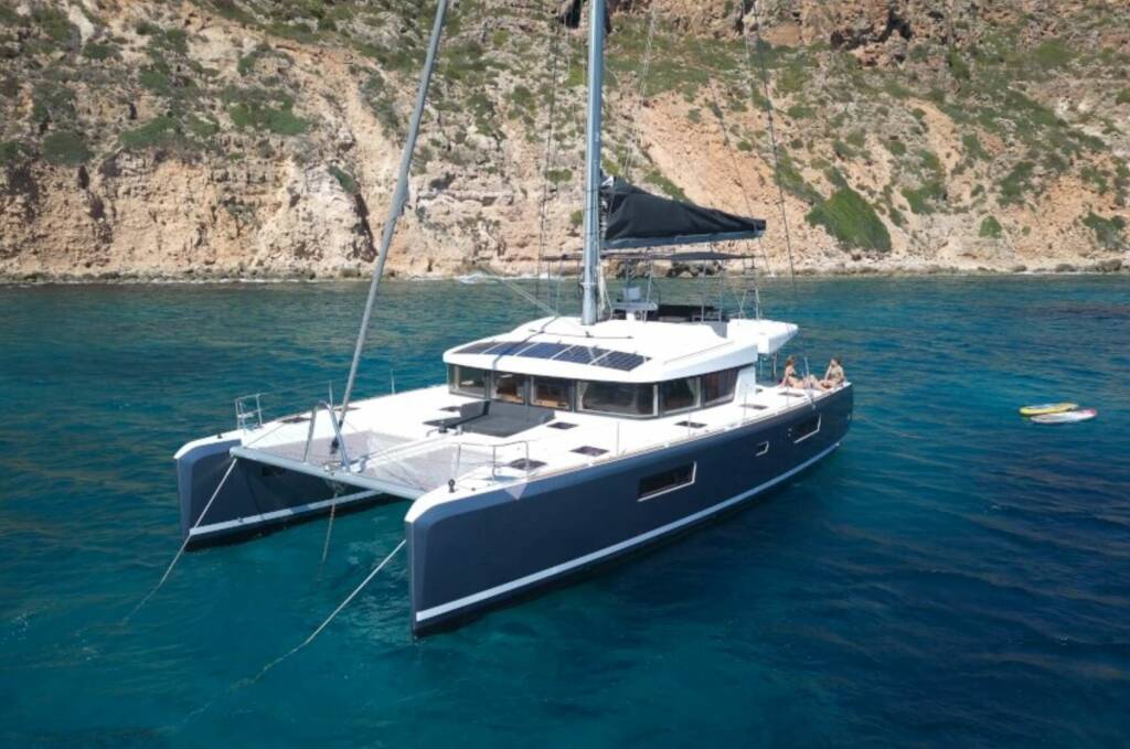 Luxusný katamarán GOA 10, postavená v roku 2017, kotví v Bahamas. Má 4 kajút, môže ubytovať 8 osôb.
