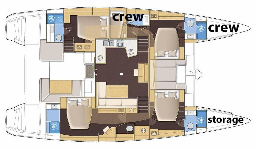 Väčšina jácht môže podľa vnútorného usporiadania ubytovať 6 až 12 hostí.