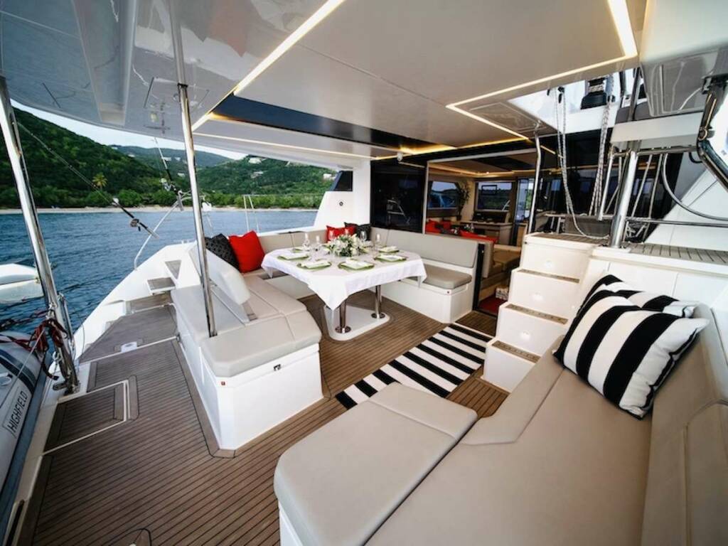 Luxusný katamarán SEA DOG, postavená v roku 2019, kotví v Caribbean Virgin Islands (US/BVI), Caribbean Windwards. Má 3 kajút, môže ubytovať 6 osôb.