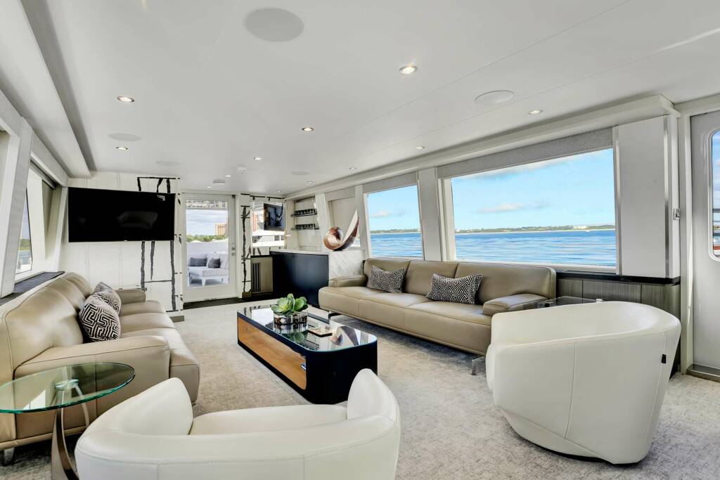 Other Entertainment: Real Summertime, built in 2000 and underwent an amazing multi-million-dollar refit in 2022, which exudes modern elegance. Its meticulously designed decks harmoniously blend indoor and outdoor living, creating the perfect environment for a luxury yacht charter. The sophisticated interior, masterfully designed by SW Designs out of Miami FL, radiates modern refinement, comfort, and impeccable aesthetic sensibility.