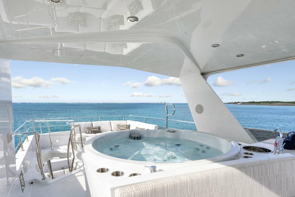 More than just a vessel, Real Summertime offers an immersive experience tailored to its guests' desires. With accommodation up to 12 guests across 5 staterooms, and a dedicated crew of 6, this yacht offers a relaxed and opulent charter experience. Indulge yourself with the third level jacuzzi, positioned against awe-inspiring scenery, or admire the underwater lights that add a touch of spectacle and style to the beach club in the evenings. For delightful entertainment, the second level outdoor cinema allows you to enjoy your favorite movies under the stars. The ideal spot for sailing would be our spacious bow seating area, offering ample space for lounging and soaking up the sun. Rest assured, if shade is preferred, our attentive crew can easily set up the Bimini shades to provide the perfect amount of coverage. Stay connected with Starlink connectivity, or experience uninterrupted comfort. Rest assured, Real Summertime ensures a seamless and luxurious journey.