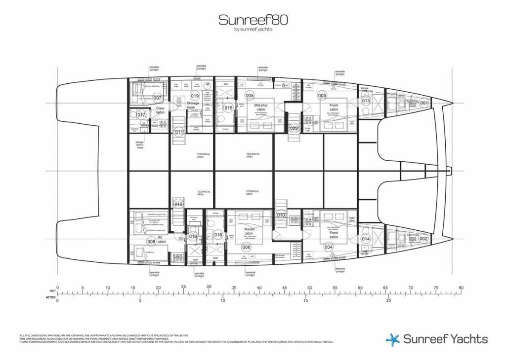 Niektoré superjachty nad 80 metrov, v súlade s medzinárodnými certifikáciami, môžu ubytovať až 36 osôb.